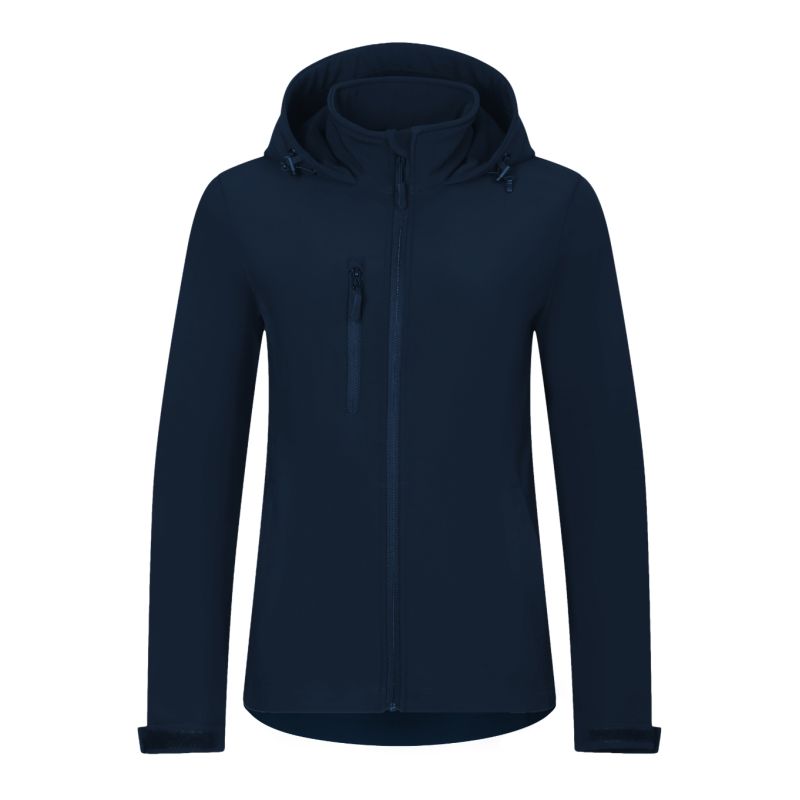 Softshell: 96% polyester, 4% elastane, 100D, 4-Way Stretch, water-repellent finish, inner side: 100% polyester - microfleece, anti-pilling finish without label - ready for rebranding, 2-layer softshell, slightly fitted cut, full-length reverse-zip fastening with chin guard, elastic hood with drawstring and drawstring at bottom, label on the back hem in a neutral size, adjustable sleeve hems with Velcro, pockets with reverse-spiral zipper, chest pocket, slightly extended at the back, inner fleece with anti-pilling finish,