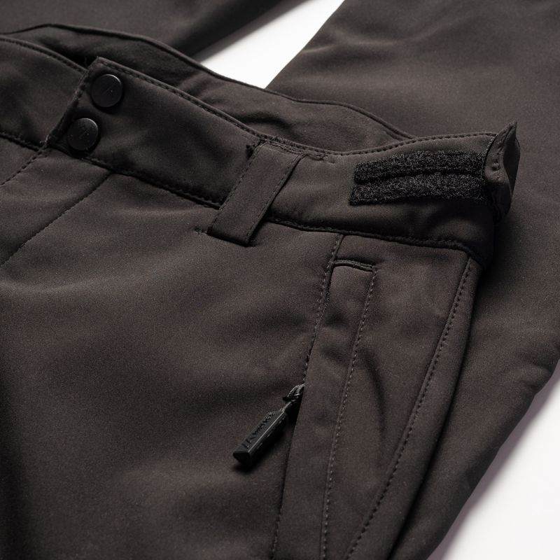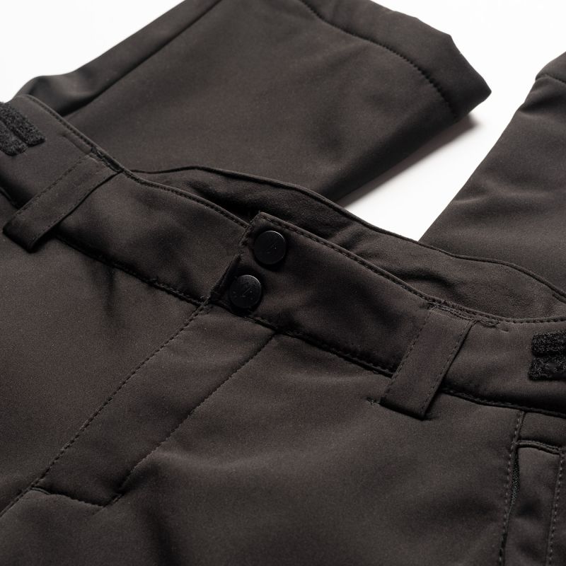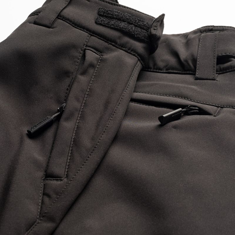 SOFTSHELL TROUSERS MATERIAL COMPOSITION: 94% POLYESTER, 6% ELASTANE, 300 g/m2 SPECIFICATIONS: - WATER RESISTANCE: 10,000 mm H2O - BREATHABILITY: 1,000 g/H2O/m2 - WINDPROOF - WATERPROOF - 3-LAYER LAMINATION - DWR COATING - REFLECTIVE ELEMENTS