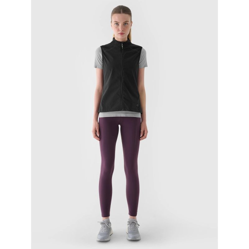 This women's running vest with a stand-up collar is an ultralight outer layer designed for jogging short and long distances on warmer days. The slim fit hugs the body without restricting movement, while the standard hip length ensures comfort during activity. Breathable, water-repellent fabric effectively wicks away moisture , reduces overheating, and provides protection during sudden weather changes. A hydrophobic water-repellent coating allows water droplets to bead on the fabric's surface and roll off freely, while the fluorine-free Bionic Finish Eco coating repels moisture and dirt while maintaining breathability and softness. The ultralight construction with Ultralight technology allows the vest to be quickly folded away when not in use. The stand-up collar protects the neck from slight chills, a breathable mesh ventilation panel on the back improves air circulation, and reflective elements increase visibility after dark. The whole thing is complemented by the possibility of packing the product into a pocket , which makes it a practical solution for any running training.