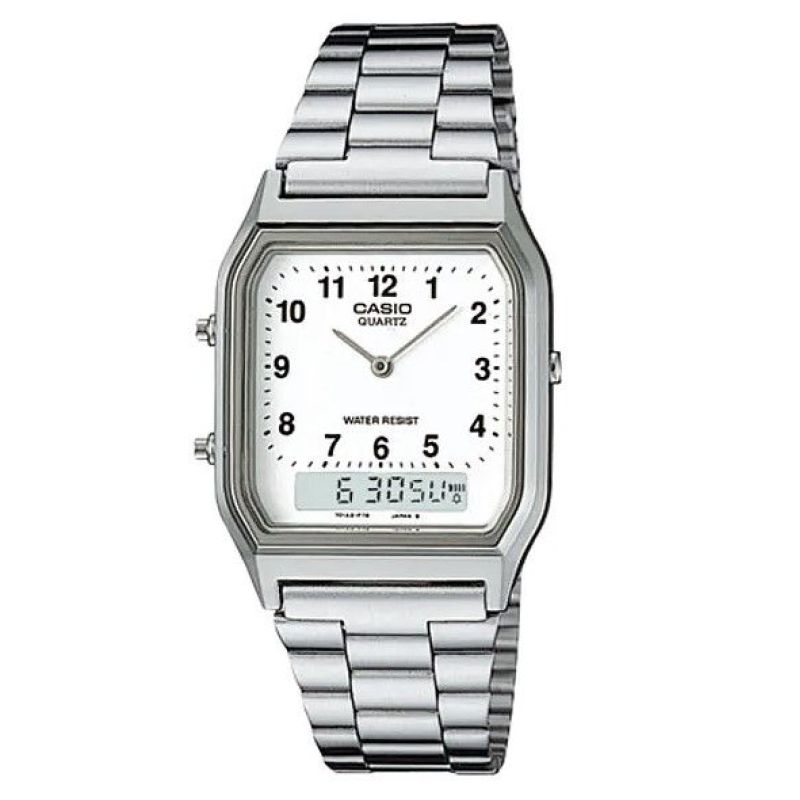 The Casio AQ-230 is a watch that combines prestige, functionality, and timeless aesthetics . An ideal choice for those who appreciate vintage style but don't want to compromise on modern features. The Casio AQ-230 offers not only beautiful design but also excellent precision. Its dual analog-digital display allows you to monitor the time in two time zones simultaneously, while additional features such as an alarm, stopwatch, and automatic calendar enhance its practicality.