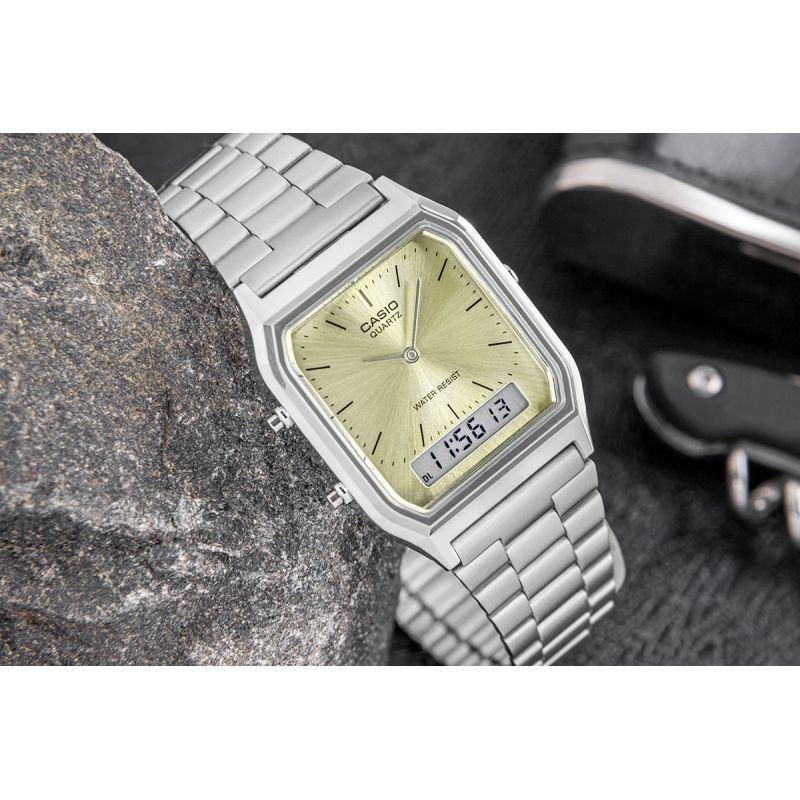 Charmingly classic, fashionably colorful – the iconic CASIO watch in a refreshed palette reflecting the latest color trends! Retro simplicity meets modern functionality in this analog watch with a small digital window that provides quick access to key information. The watch allows you to track two time zones, and features like a stopwatch, alarm, and automatic calendar make this watch perfectly suited to the rhythm of modern life. The versatile, elegant design makes it a perfect fit for both formal events and everyday outings. An ideal choice for those who appreciate vintage style but don't want to compromise on modern features.