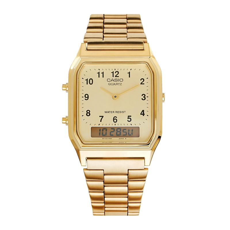 The Casio AQ-230 is a watch that combines prestige, functionality, and timeless aesthetics . An ideal choice for those who appreciate vintage style but don't want to compromise on modern features. The Casio AQ-230 offers not only beautiful design but also excellent precision. Its dual analog-digital display allows you to monitor the time in two time zones simultaneously, while additional features such as an alarm, stopwatch, and automatic calendar enhance its practicality.
