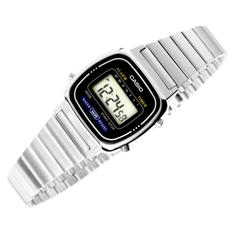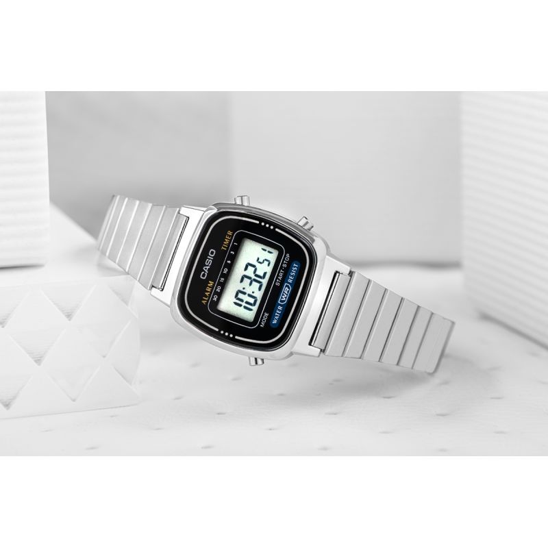 A digital watch for fashionistas who value individual style while staying current with the latest trends. Its delicate, rounded case, framed by a metal bracelet, evokes classic 1970s style, adding a retro touch to any outfit. With a built-in stopwatch, timer, and alarm, this watch is not only a decorative piece but also a practical accessory for women who value functionality in a beautiful setting. Its delicate buttons give a sense of control over time, while its lightweight construction allows it to practically blend with your skin, accompanying you throughout the day.