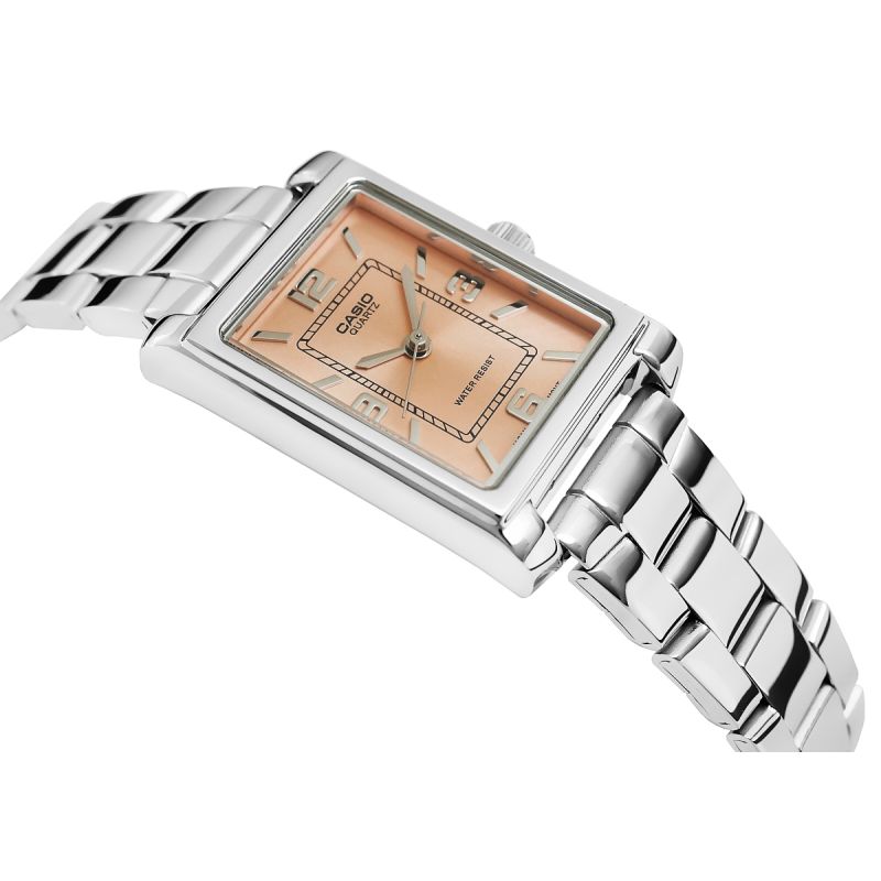 Discover how a segmented silver watch strap can add charm to your everyday outfits! Its subtle design exudes elegance, introducing a touch of finesse that attracts attention. Crafted from high-quality stainless steel, it not only impresses with its appearance but also ensures durability and comfort. The sensual nature of this strap allows it to fit perfectly on a woman's wrist, delicately enveloping it and emphasizing its femininity. The subtle CASIO logo on the clasp completes the look.