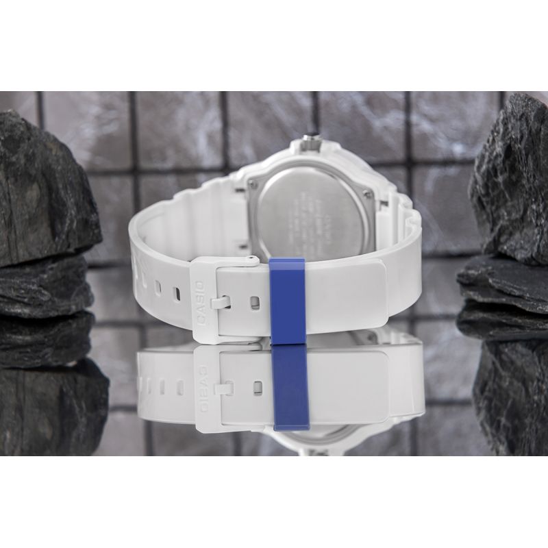 This model features a round, white case crafted from lightweight and durable resin, making the watch almost unnoticeable on the wrist. The white dial features a stylish accent – blue accents add a touch of lightness and sportiness. The dial features bold Arabic numerals that contrast with the light background, ensuring easy reading. The rotating bezel provides complete control over the time, while the day and date display is an essential addition to always keeping up with the times. It weighs just 39g!