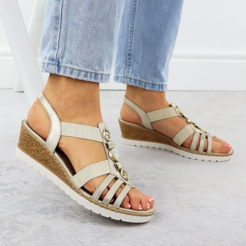 Women's wedge sandals with elastic bands, gold, Remonte R6264-91