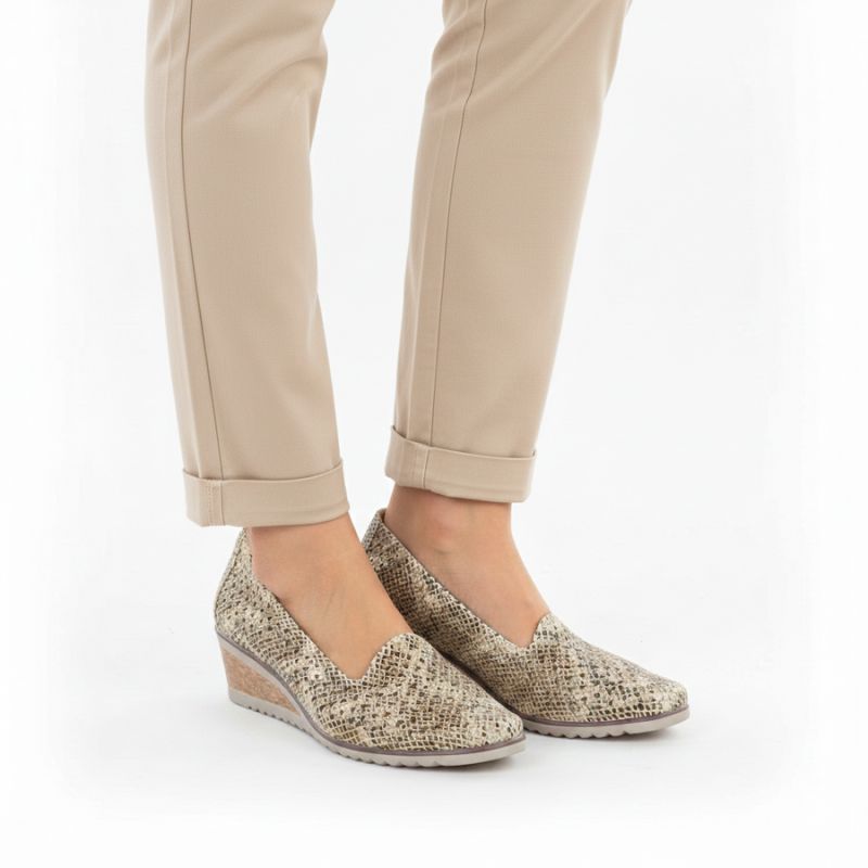 Women's wedge shoes with openwork snake print, beige, Potocki SZ12306