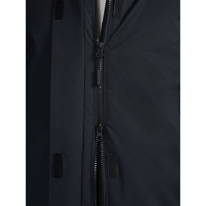 The integrated adjustable hood, two-way zipper with a storm flap , and hook-and-loop cuffs allow you to adapt to changing conditions. Laminated pocket zippers protect contents from moisture, and the knee-length design effectively protects the lower body from wind and cold.