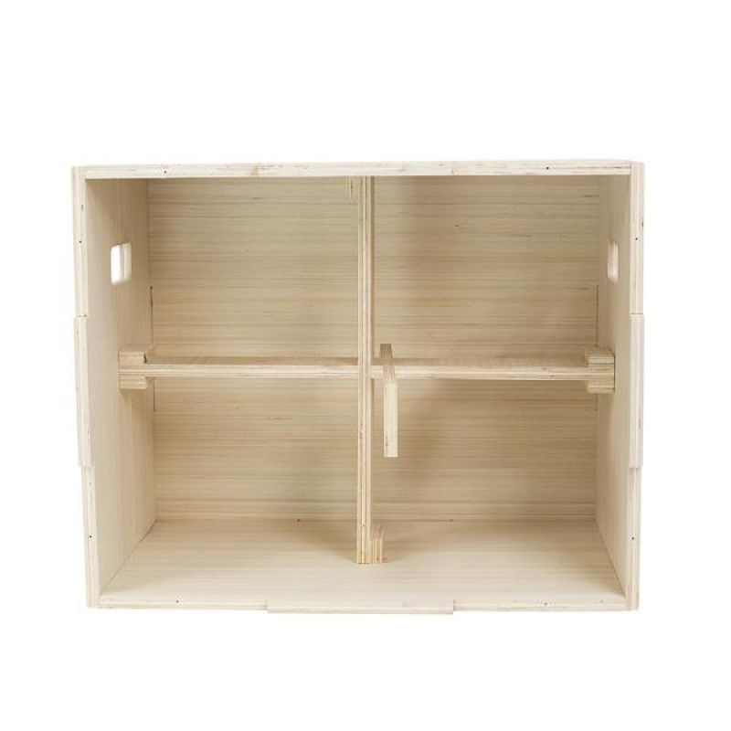 - The box material is wooden plywood that creates puzzle-like overlaps, ensuring the stability and durability of the structure.