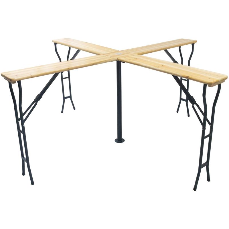 WOODEN CROSS-BANDED FOLDABLE PICNIC BAR TABLE