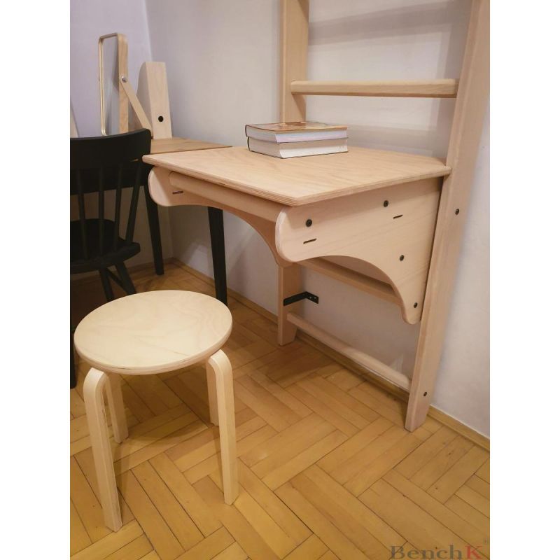 The beech BenchK 111 ladder with a BenchTop BT204 desk not only motivates its user to engage in physical activity but also serves as a desk. It can be used by all family members, thanks to the adjustable height of the bar and its attachment. The BenchK 111 with a desk is a practical and modern piece of sports furniture.