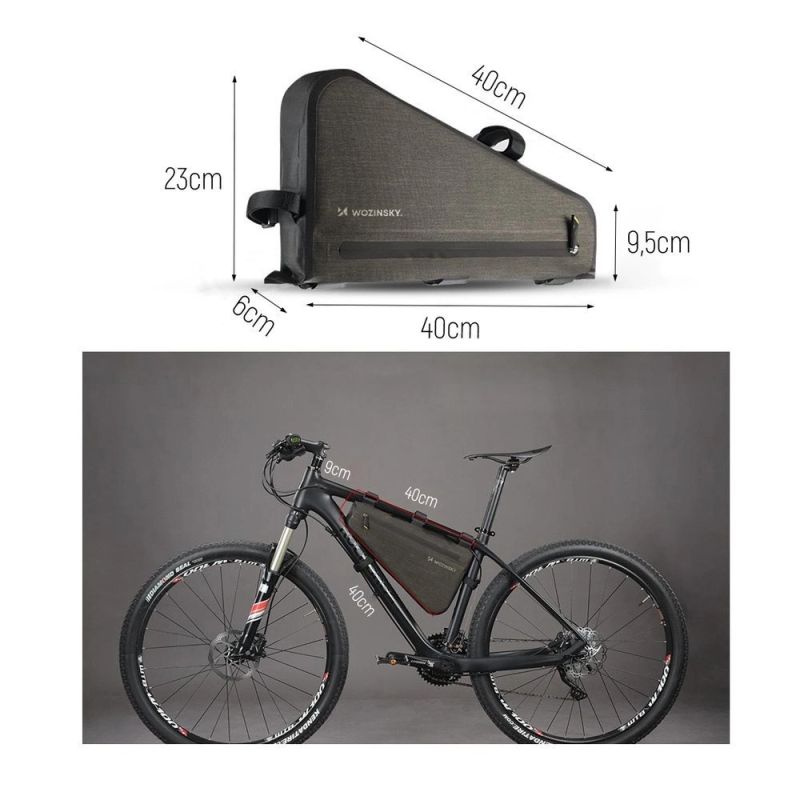 The Wozinsky WBB15BK bag is lightweight and compact . Its triangular shape perfectly complements the frame's light. It won't get in the way while riding —forget about bumping your knees or rubbing your thighs. Mounting under the frame also provides excellent visibility . Nothing will distract you from the trail.