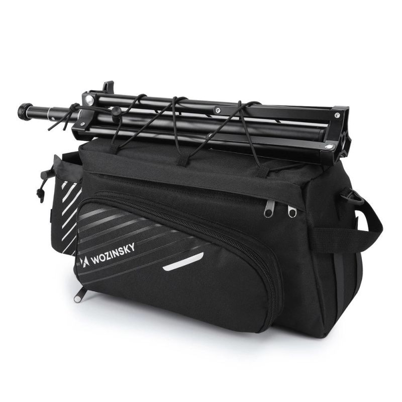 The Wozinsky WBB22BK is a truly versatile bag – you can carry it three different ways . Its main feature, of course, is its ability to attach to your bike rack, but that's not all. The Wozinsky WBB22BK bike bag also features a long shoulder strap and a comfortable grab handle . So you can easily detach the bag from your rack and take it with you shopping or to work.