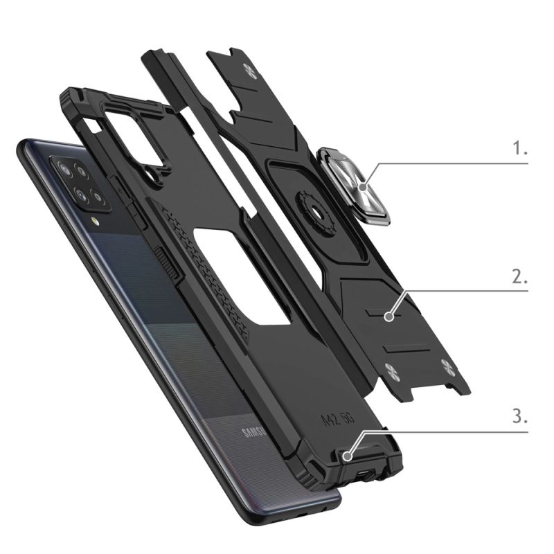 Wozinsky Ring Armor Case Kickstand Tough Rugged Cover for Samsung Galaxy A42 5G silver