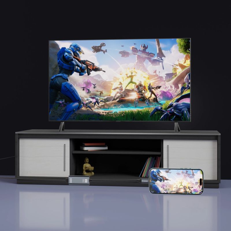 The adapter enables image transmission in 4K resolution at 60 Hz and Full HD 1080p, offering a smooth and detailed image on a TV, monitor or projector.