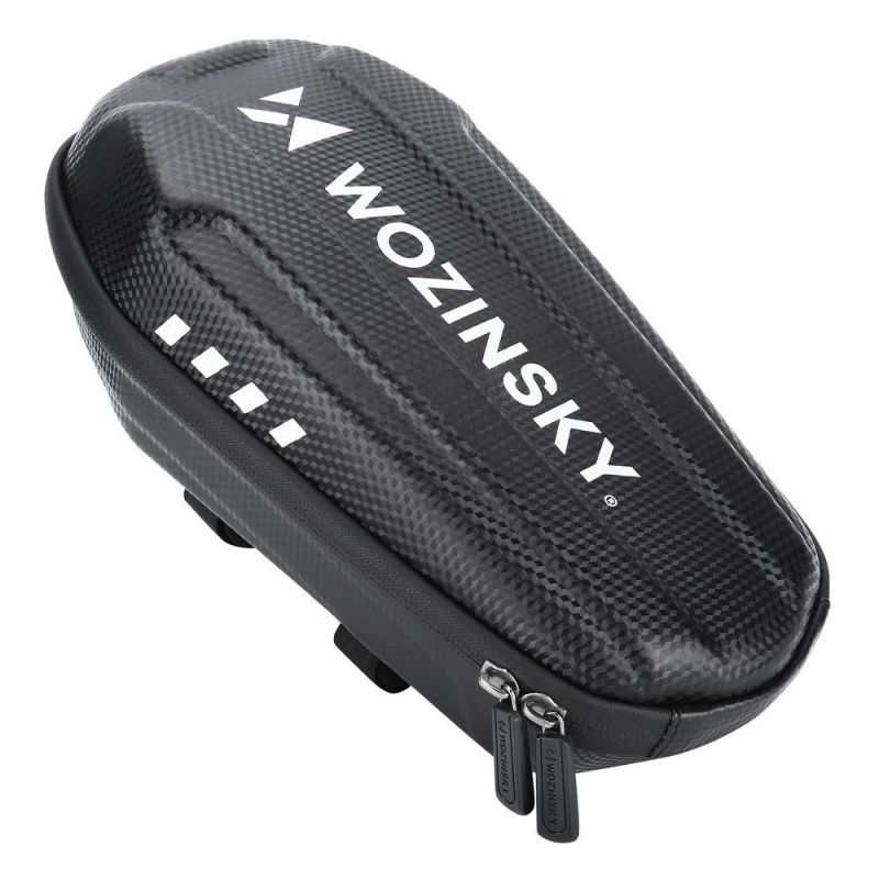 The Wozinsky WSB4BK scooter handlebar bag is made of a durable, reinforced material – EVA – which increases resistance to various types of damage. Thanks to the reinforced structure, your items transported inside will not be damaged . The EVA material is also fully resistant to water, moisture, and dust . So you can take the bag with you even in inclement weather or when night falls. The front of the bag features a large reflective logo, and the all-round zipper is waterproof.