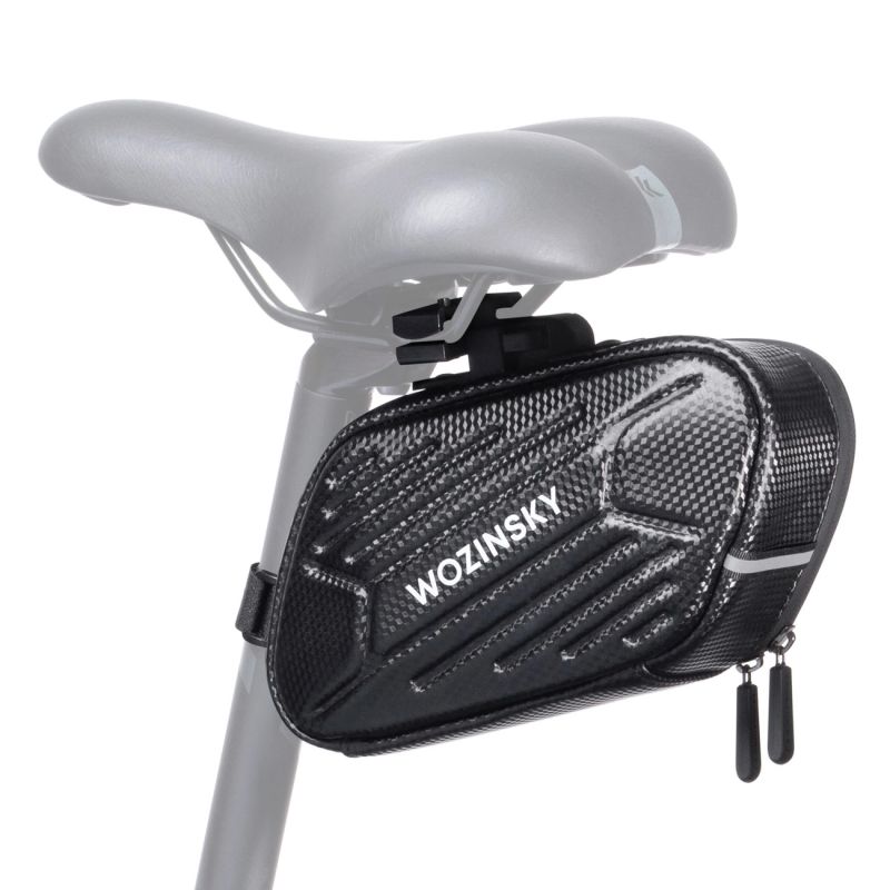 The Wozinsky WBB27BK saddlebag is a great choice for more demanding trails . Thanks to its unique mounting system , the bag holds the saddle securely . You don't have to worry about it accidentally coming loose or opening while riding on bumpy roads. Its design has been carefully considered for cyclists who enjoy off-road riding.