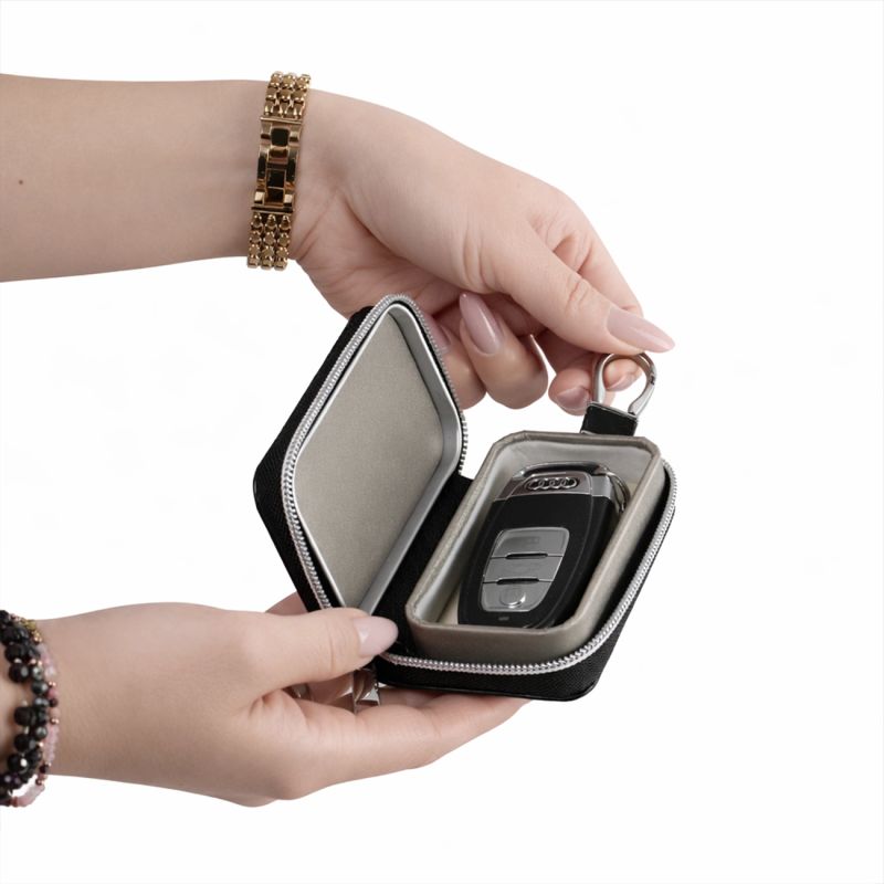 - Radio signal blocking: Faraday cage prevents interception of the signal from the key.