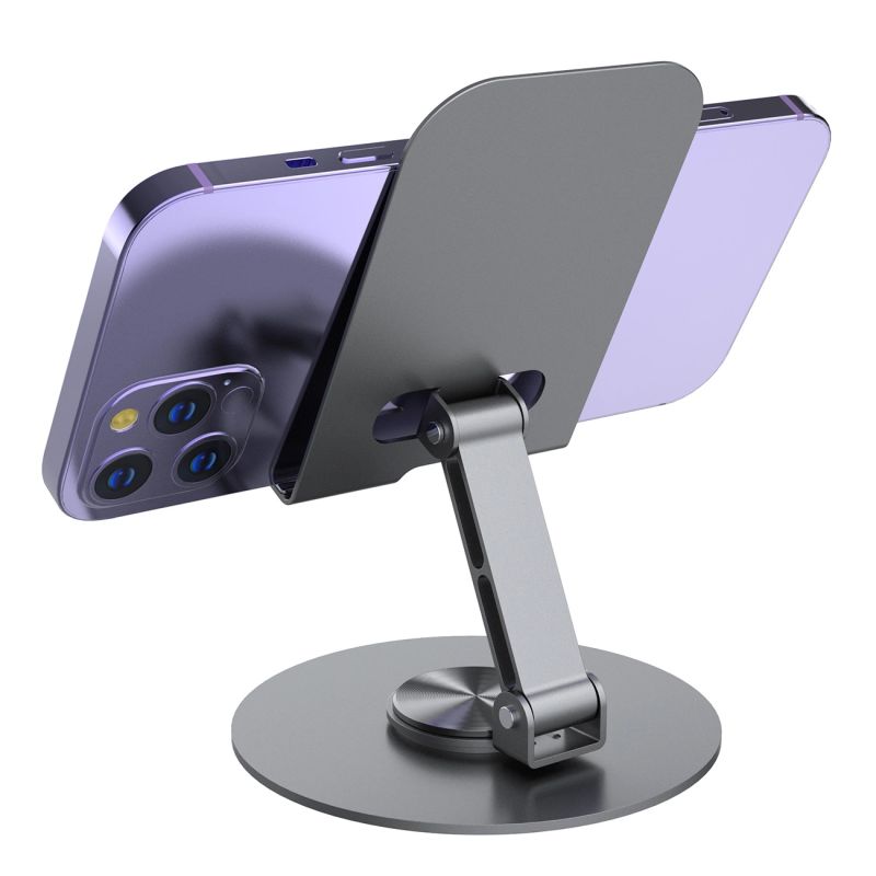 The stand base rotates, allowing you to conveniently change the orientation of your device without lifting your phone or tablet.