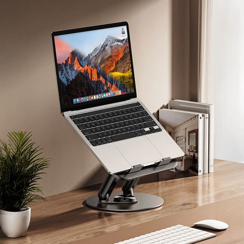 The round base allows you to rotate the stand so you can comfortably position your laptop or tablet at the right angle while working or watching content.