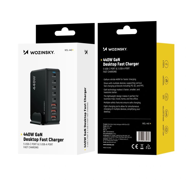 Wozinsky WSL-440 440W GaN QC3 Charging Station - Black
