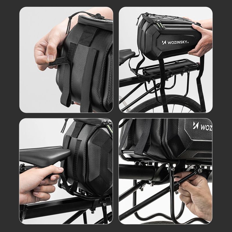 The Wozinsky WSR-01B is a functional 9-liter bike bag designed for mounting on your luggage rack. It's perfect for both daily commutes and longer bike rides. Its rigid construction, waterproof material, and thoughtful features allow you to safely transport your luggage in a variety of weather conditions.