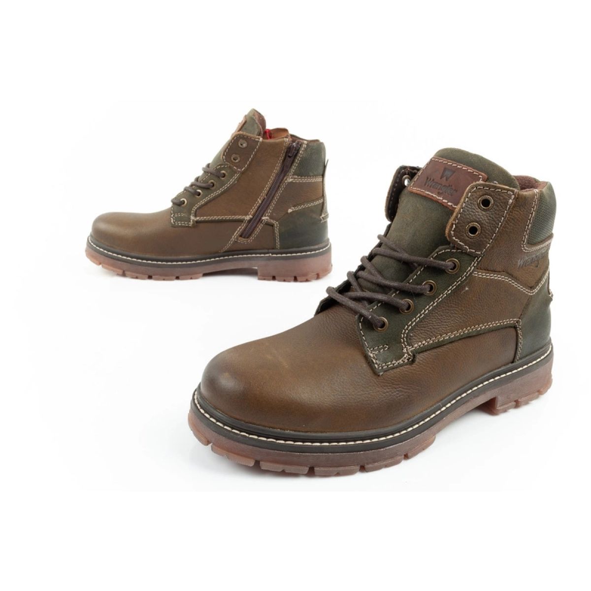 Subtle Wrangler logo emphasizing the originality and character of the footwear.