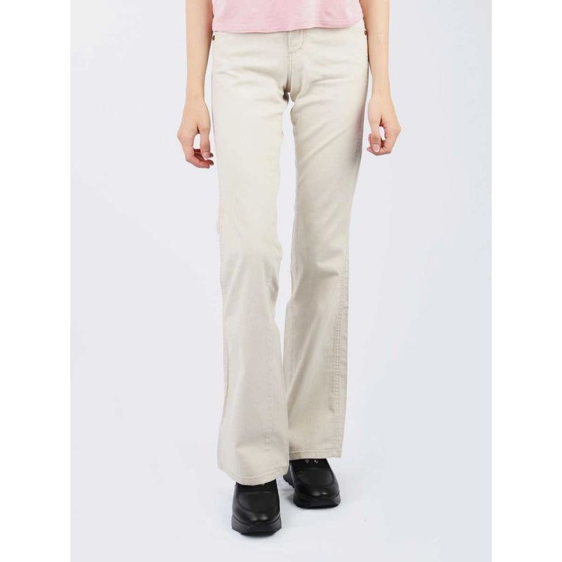 Women's low-rise, wide-leg trousers with a zipper closure.