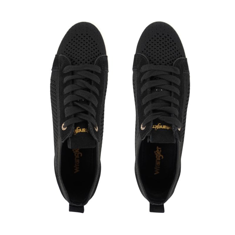 Wrangler Liz Women's Shoes Black 20261058 25Y Wrangler women's shoes are perfect for everyday wear. They feature a chunky knit upper. Faux leather inserts at the laces and heel. A thick cupsole.