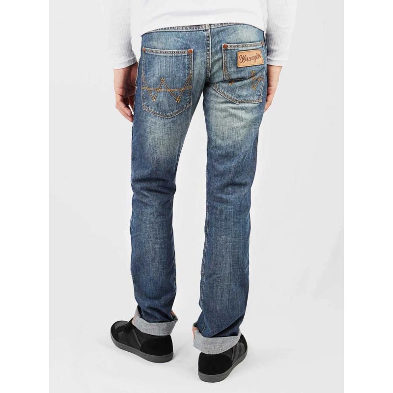 Men's low-rise jeans with tapered legs. Button closure. Leather logo patch on the back pocket.