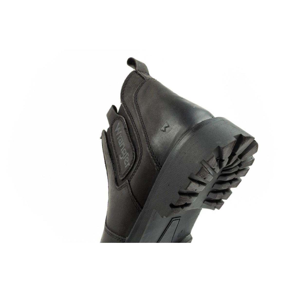 Subtle Wrangler logo emphasizing the originality and character of the footwear.