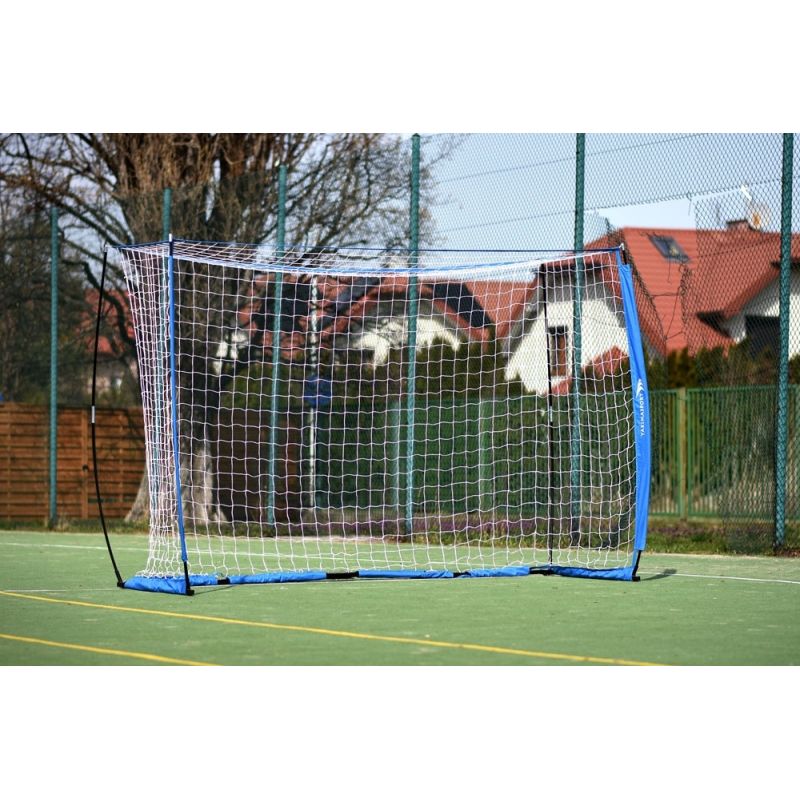 - The net includes blue trim for the lower frame and posts along with Velcro fastening.