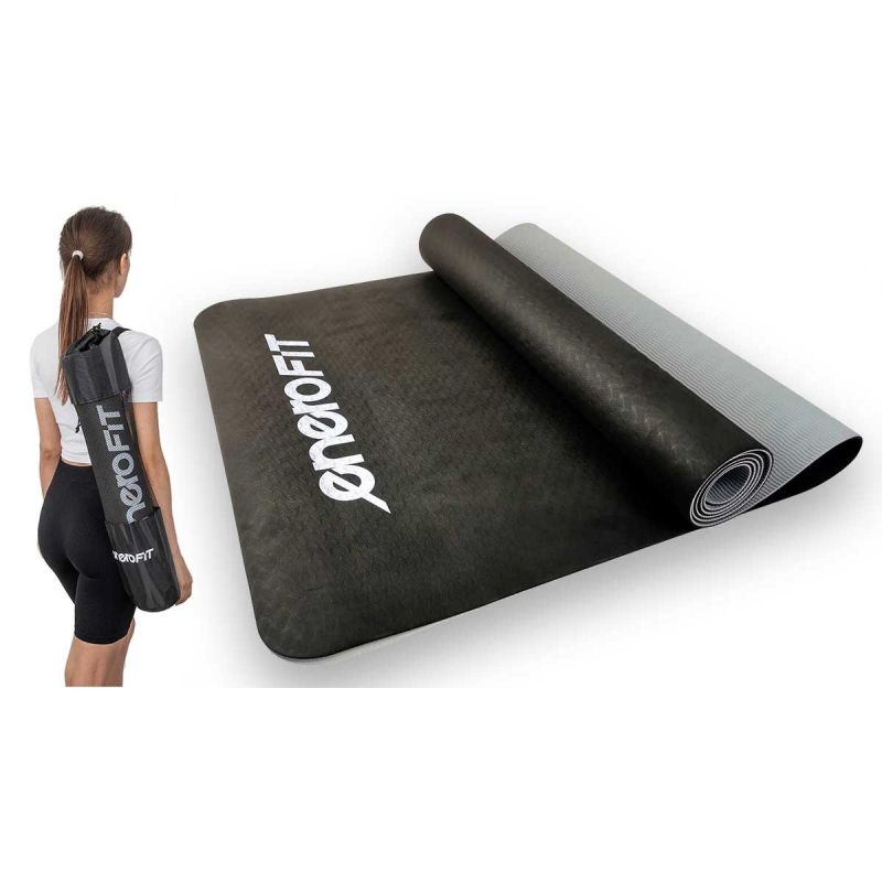 YOGA AND FITNESS MAT TPE ANTI-SLIP BLACK AND GREY ENERO FIT