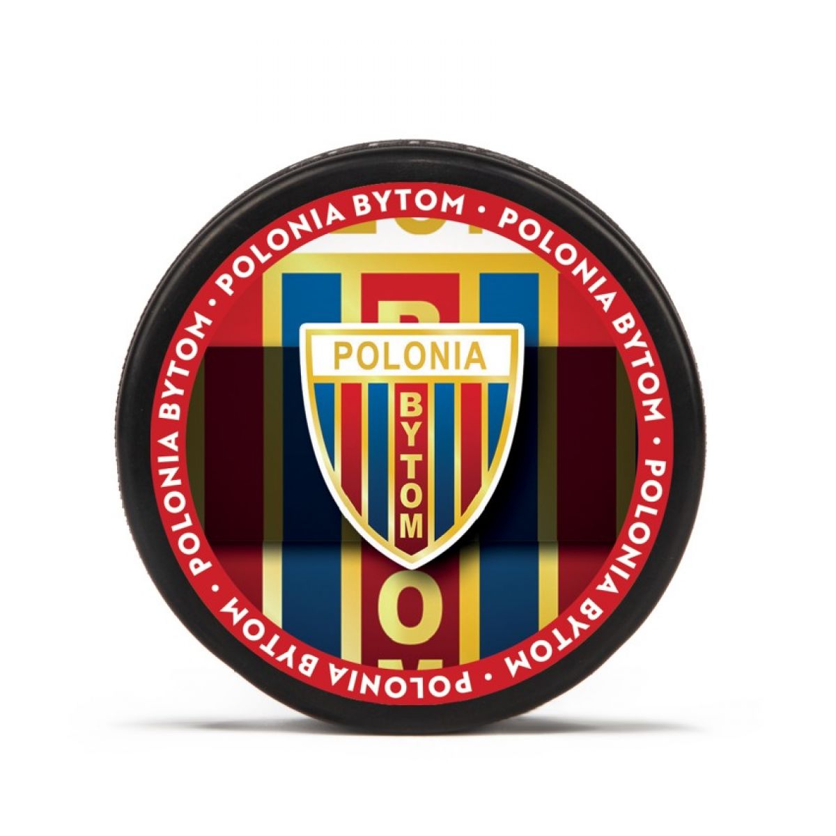 Zagłębie Sosnowiec Medium Hockey Puck. The official Zagłębie Sosnowiec hockey puck is the perfect gadget for fans of the team. Made of high-quality rubber, it is durable and has good rebound properties, making it perfect for both play and collection. Key features: Unique design with a double-sided print: Front: Zagłębie Sosnowiec logo placed centrally. The background is decorated with the club colors and geometric patterns inspired by the team's crest. The red ring surrounding the puck features the inscription "ZAGŁĘBIE SOSNOWIEC," emphasizing team affiliation. Back: Official Polish Hockey League logo for the 2024/2025 season in elegant black and white. Dimensions and weight: Official dimensions of a senior hockey puck. Weight: 156-170 g. High quality: Made of durable rubber, perfect for play or as a collectible. The print is UV-printed, ensuring durability and abrasion resistance. The Zagłębie Sosnowiec Medium hockey puck is stylish, solidly made, and full of club character. An excellent choice for Zagłębie Sosnowiec fans!